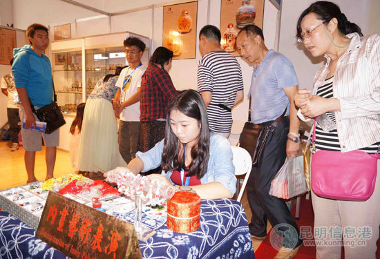 昆明信息港讯 通讯员王丽华 本届南博会上,特色艺术品尤其受到中外来宾的青睐。作为官渡区区属的重点非遗项目——滇派内画、乌铜走银一起走进了南博会场,吸引了五湖四海的朋友。