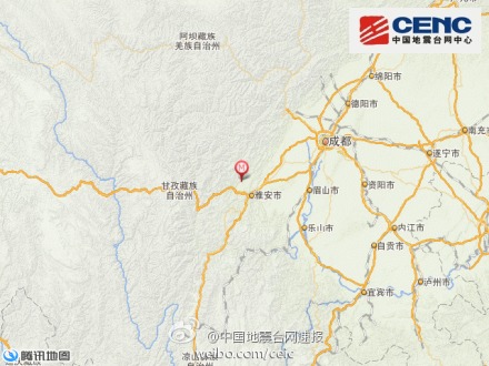 四川雅安芦山县8日5时发生4.1级地震 震源深度17千米