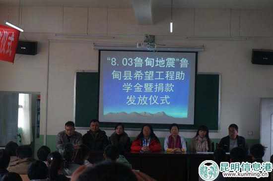 14日上午,云南青基会副理事长李燕飞、长沙青基会代表、昆明文化传播演艺联合会代表,在鲁甸团县委的大力支持下,举行“8.03鲁甸地震”鲁甸县希望工程助学金发放仪式,为鲁甸县火德红中学400名受灾学生送上祝福与希望。仪式由鲁甸团县委书记王文杰主持。