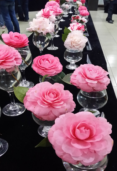 展厅里,一朵朵形态各异的茶花放在晶莹剔透的玻璃杯中,杯子衬托出茶花的美丽姿态。早桃红、银粉牡丹、红珍珠……争奇斗艳的茶花让市民啧啧称奇。工作人员介绍,本次花朵展是历届花朵展中品种最多、参展单位最多的,除了观赏茶花,市民还可以在这里看到来自云南省书法家协会、云南美术家协会的数十位书画大家的作品,墙上的书画与展厅中央的茶花交相辉映、相得益彰,一场茶花与文化盛宴正在展开。