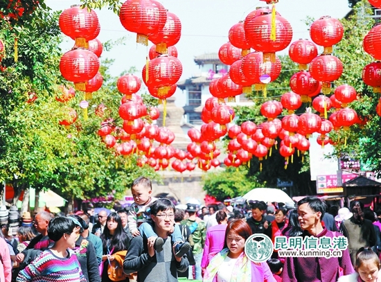 春节期间 昆明金殿公园官渡古镇庙会年味足