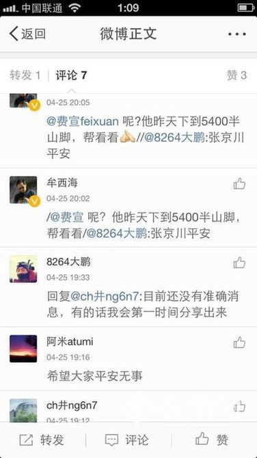 记者25日晚多次拨打云南籍探险家张京川的电话,电话均未能接通,未能联系上张京川本人。随后,记者通过新浪实名认证微博“8264大鹏”确认,张京川本人平安,但未能有进一步消息。