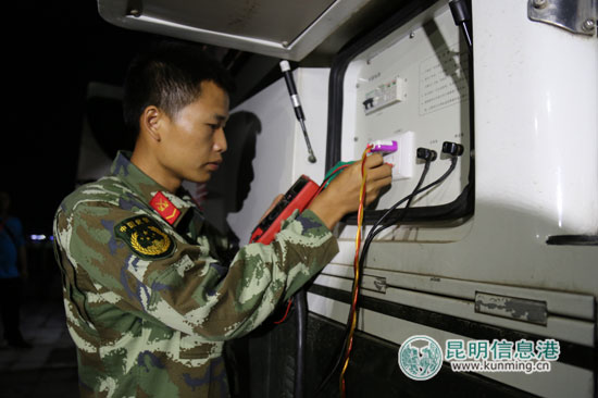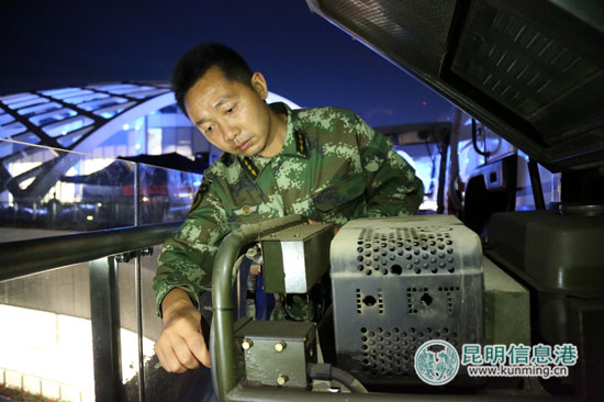 昆明信息港讯 记者廖拓溪 通讯员杨红智 16日,被成为“史上最严格安保”的第三届南博会进入最后一天。早上4点,滇池国际会展中心静静地被黑夜笼罩着,只待几小时后阳光和扫货人潮一起到来。而此时,武警云南总队第 二支队通信股的官兵们已经起床,早早开始一天的忙碌。