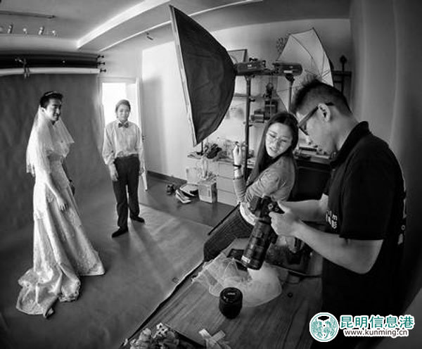 周思彤在给一对另类小夫妻拍