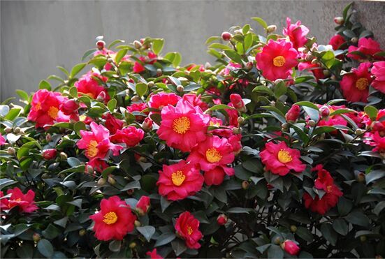 茶梅花色多样,开花期长,从9月一直要开到12月,,色彩瑰丽,淡雅兼具,树形优美,枝条大多横向扩展,姿态丰满,着花量多,适合盆栽欣赏。