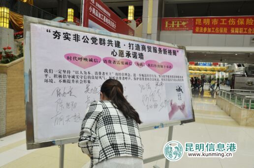 启动仪式上,螺蛳湾管委会党工委书记赵昆在致辞中表示,“非公党群共建载体创新”项目是一个具有较好示范和引领作用的项目,给基层党建工作带来了新的思考、新的思路、新的视角和新的方法。随后,商户代表针对活动主题宣读了诚信经营承诺书并在“心愿承诺墙”上签名,部分爱心商户当场捐出价值36.6万元的爱心物资。最后官渡区区委常委赵春泉副书记在总结发言中充分肯定了“非公党群共建载体创新”项目的实施价值。他指出,螺蛳湾管委会党工委要加强领导、把好方向;要思考深入、打开思路,通过“非公党群共建载体创新”项目,探索区域化非公党建发展的新途径,实现商贸城片区基层党建工作的创新发展。在商贸城及官渡区形成具有较大影响力并能够广泛推广的特色党建品牌。