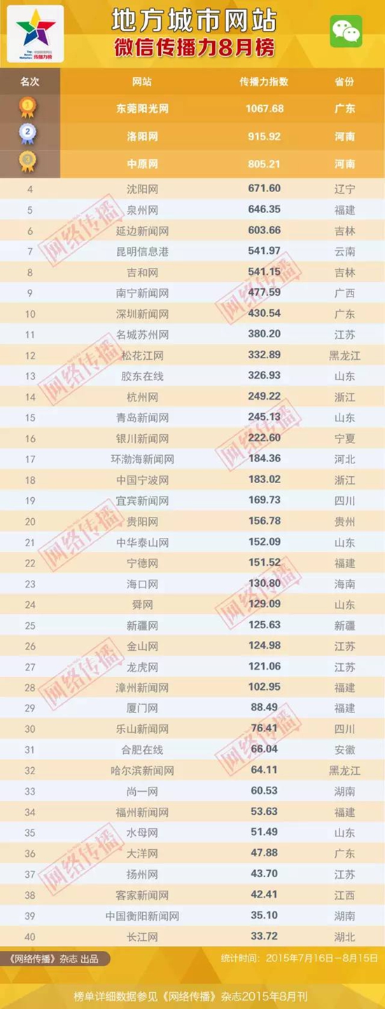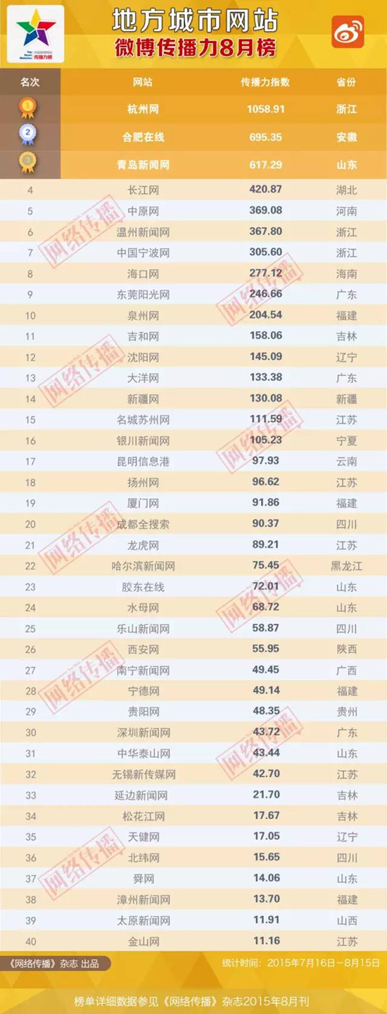 全国地方城市网站传播力8月榜惊艳亮相