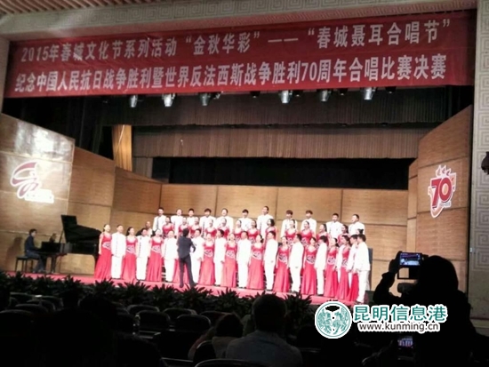 昆明信息港讯 通讯员郭武辉 日前,2015年春城文化节“金秋华彩”——春城聂耳合唱节合唱比赛在昆明人民胜利堂举行。来自全市12个县区、5个开发(度假)区的24支合唱队各展风采。