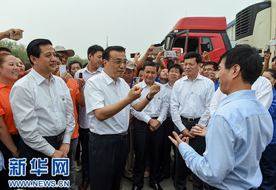 考察中,李克强充分肯定河南省经济社会发展取得的成绩,希望按照“四个全面”战略布局要求真抓实干,积极推进“四化同步”,在“双创”中敢为人先,加快中原发展,促进中部崛起,为我国经济保持中高速增长、迈向中高端水平做出新贡献。