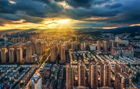 昆明的南面有“高原明珠”滇池,过去形容滇池为水满盈野、荻苇蔽天,绿杨铺岸、江空月明,“五百里滇池,奔来眼底,披襟岸帻,喜茫茫空阔无边”的名句广为传颂。滇池与北、东、西三面群山形成绝妙对景,是天造地设的佳境。昆明城以滇池作为城市开阔的明堂,从而让日照更充分,让城市的空气更清新。