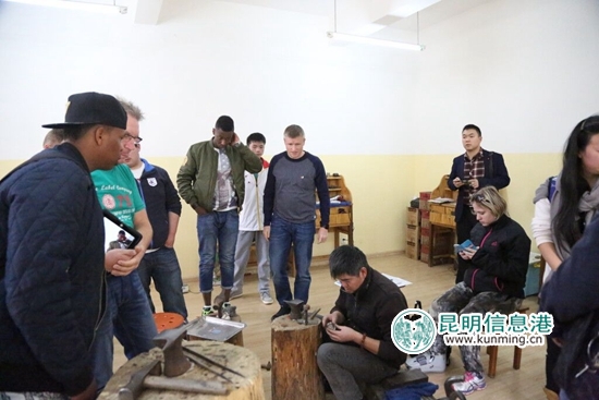 瑞典特殊教育学校师生参观官渡乌铜走银技艺