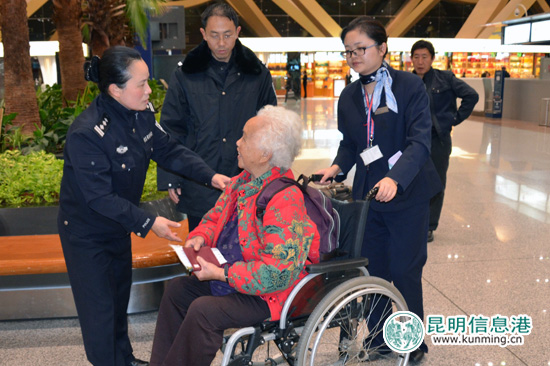 昆明信息港讯 记者合宇聪 11月12日,昆明长水国际机场迎来了一位特殊的旅客,在昆明居住多年的83岁台湾籍老人马奶奶,这是她回台湾与家人团聚的日子。马奶奶长期居住在西山区南方公园小区,虽然有几个子女,但他们都在台湾、美国工作,经常是马奶奶一人孤孤单单地生活在昆明,因为年事已高,不识字,加上身患各种疾病,老人的生活起居成了最让人担心的问题。
