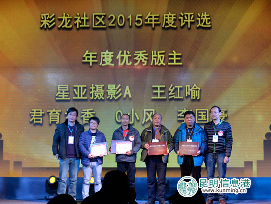 “星亚摄影A”、“王红喻”等5名网友被评为年度优秀版主,“昆明工人新村”、“刘光华”等5名网友获评年度明星网友,“I'm陈柏宇”、“花语呢喃”等10名网友被评为年度新人,“刘家荣”、“南疆红叶”等20名网友获评互动达人。获奖网友们分别获得了现金奖励及奖杯、勋章。