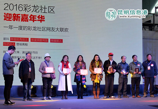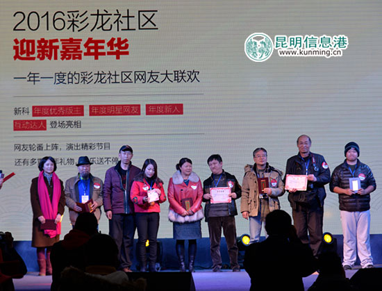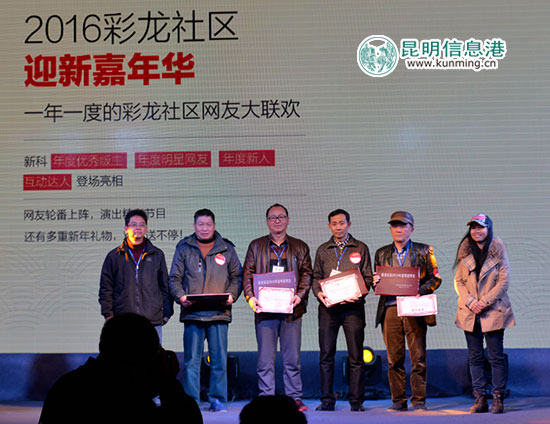 昆明信息港讯 记者赵艳芳 12月19日下午,“2016年彩龙社区迎新嘉年华”在昆明M60创意园文化中心举行,现场公布了彩龙社区“年度优秀版主”、“年度明星网友”、“年度新人”、“互动达人”4项年度大奖的评选结果,“星亚摄影A”、“王红喻”等40名网友各获殊荣,将奖杯和大礼包捧回家。