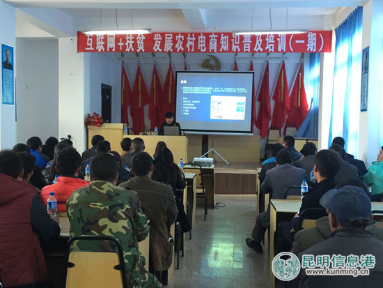 昆明信息港讯 记者王莹 1月8日,“互联网+扶贫”发展农村电商知识普及培训在昆明倘甸产业园区和轿子山旅游开发区联合乡举行。来自云南本土的电商企业和新媒体代表现场分享了如何利用互联网营销农副产品、提升产品竞争力,探索联合乡农村电商发展之路。