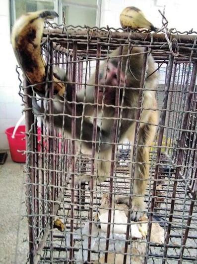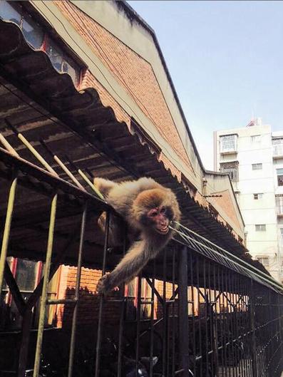 “我们到现场的时候,它已经清醒过来了,于是我们将它带回了昆明动物园。现在它的情况很好。”昆明动物园动物管理科科长黄松说,昨日上午,他们接到消息称在昆明理工大学新迎校区一带发现了一只公猴,工作人员随即赶到现场。据知情市民介绍,这只猴子当时正在攀爬一栋居民楼房,但一时失手从高楼摔下来,昏倒了。市民听到“砰砰”的响声后,走近一看,发现掉下一只猴子,随即,怕猴子伤人,大家七手八脚用绳子将猴子捆绑起来。不久,这只猴子醒过来了,市民还拿来香蕉、苹果给它吃,并报了110。警方随即与昆明动物园取得联系,昆明动物园工作人员赶到后,将其送至兽医院检查就诊,所幸猴子伤情不重。