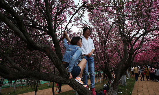 当下,昆明动物园樱花和海棠同时绽放,正是最佳赏花时节,仅上周六、周日就有18万人到圆通山赏花。赏花人多,也出现了许多不文明赏花现象。今日,晚报记者来到昆明动物园,看到了各种奇皅摧花行为,拽着花枝拍照、摘下花拍照、爬上树拍照、摇花树……