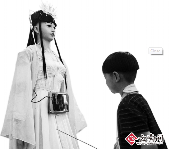 昨日,云南自主研发的4个机器人也出现在了会场。“这个送餐机器人不像平时机器人餐厅里的根据轨道走的那种,它是通过头顶的wifi控制的。”云南小土豆机器人科技有限公司CEO张曦之介绍,这个送餐机器人“说”着一口流利的重庆话,目前服务于曲靖的一家重庆火锅餐厅。