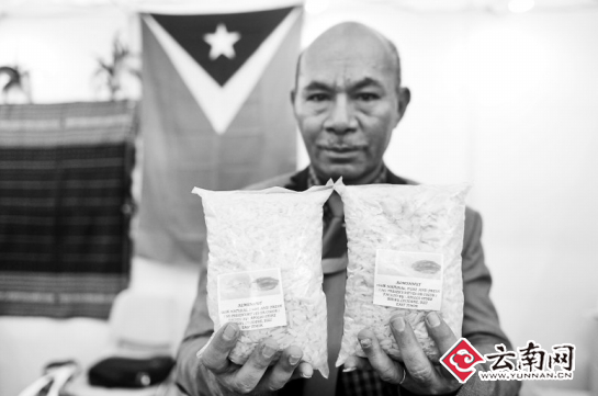 尽管是第一次参展,而且只有一个展位,东南亚岛国东帝汶还是带来了很多本国特色的商品:檀香木、有机花生、纯天然野生蜂蜜、橄榄仁。这个橄榄仁有些特别。“产橄榄仁的树有这个场馆那么高,人工采摘基本不可能。”东帝汶中华商会的参展商黎秀鹏说,在果子成熟的时候,鸽子就会飞上枝头,把成熟的果子吃掉,再从粪便中排出。之后,人从鸽子的粪便中把果子挑出来,取出里面的果仁。