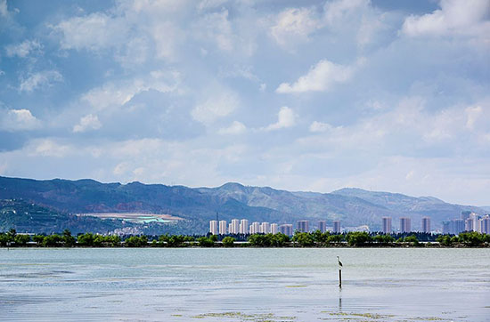 这一切都要归功于昆明近年来在滇池治理上付出的巨大努力。按照现代新昆明的发展战略,昆明加大了滇池湖滨生态湿地建设,在滇池湖滨33.3平方公里内全面开展“退田退塘、退人退房、还湖、还湿地、还林”的“四退三还”工作,首次实现“人退湖进”。