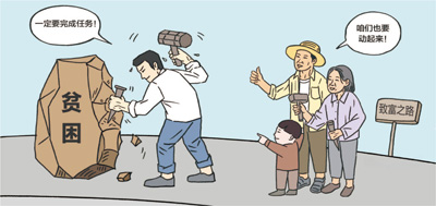 驻村扶贫干部想要带领群众脱贫致富的迫切心情可以理解。但是过分追求短期内出成绩、比成效,就很容易让脱贫攻坚走偏。这种攀比心态在一些群众中间也存在,每当发一些扶贫物品,就会有一些群众相互“攀比”,出现争穷比穷、“躺着当低保户”的现象。
