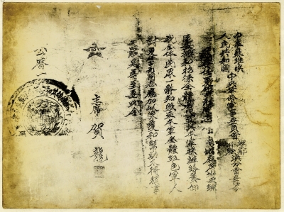 红二、六军团在中甸短暂停留的几天时间,严格执行党的纪律和民族、宗教政策,赢得了藏族中上层人士及广大群众的理解、支持和帮助,使红军部队得到了休整和补充。归化寺喇嘛夏拿古瓦等人更是为红军日夜奔走,为此,贺龙为夏拿古瓦颁发委任令。图为1936年5月贺龙颁发给归化寺喇嘛夏拿古瓦的委任令。