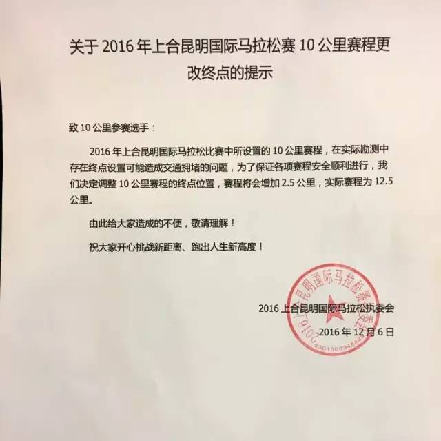 昆明信息港讯 各位跑友注意啦!各位跑友注意啦!特别是报名参加10公里的小伙伴们,因为市政交通问题,2016年“上合昆马”的10公里跑的终点将有变更,你将多跑2.5公里。