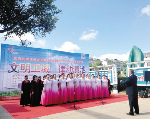 昆明信息港讯·昆明日报 记者缪亚平 近日,度假区海埂街道卫城社区在滇池卫城广场举办了创建全国文明城市文艺宣传活动,通过歌舞节目传播文明行为的同时,进一步丰富了广大市民文化生活。