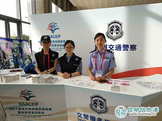 昆明信息港讯 记者合宇聪 记者从昆明市公安局交警支队获悉,在12日开幕的2017南亚东南亚国家商品展暨投资贸易洽谈会(以下简称“商洽会”)上,昆明交警首次设立形象宣传展示区,向广大市民展示昆明交警良好形象,微信公众号现场注册登记,功能展示,交通事故快处快赔实际操作等内容。