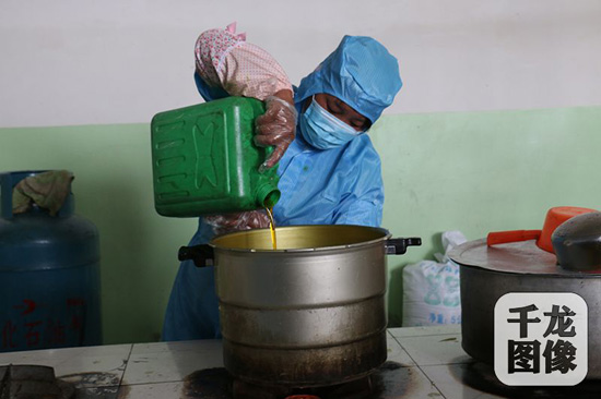 8月14日,“喜迎党的十九大·全国网络媒体西藏行”采访团来到位于日喀则市的西藏藏雄特色农产品科技发展有限公司。图为工作人员正在准备制作特色小吃“朋必”。千龙网记者 马文娟摄