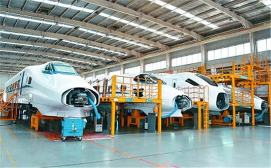 图为中车四方的动车生产车间。新华社发