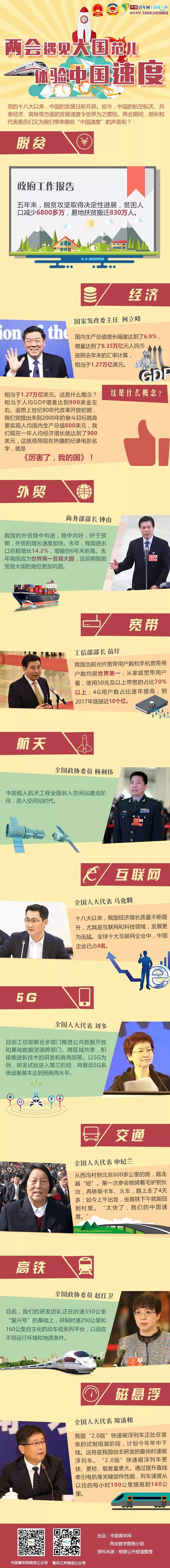 党的十八大以来,中国的发展日新月异。如今,中国的航空航天、共享经济、高铁等方面的发展速度令世界为之震惊。两会期间,部长和代表委员们又为我们带来哪些“中国速度”的声音呢?