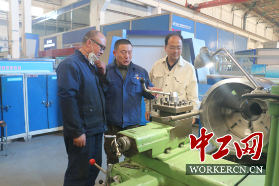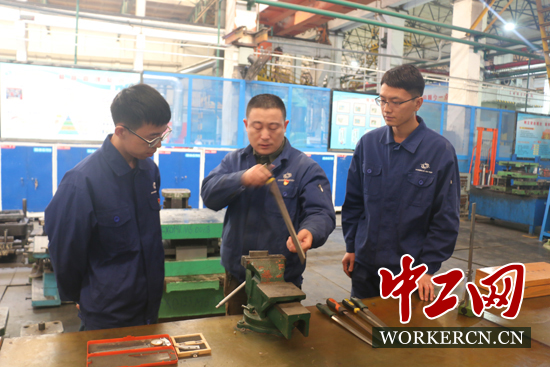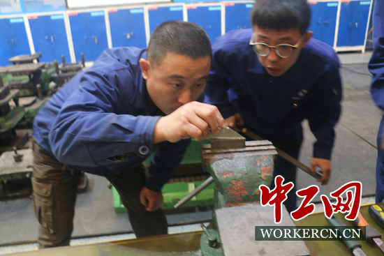 张学海在工作中指导徒弟。中工网记者朱晶晶摄