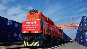 The 110,000th China-Europe freight train exited China via northern Inner Mongolia's Erenhot Port, the largest land port on the China-Mongolia border, on Thursday.