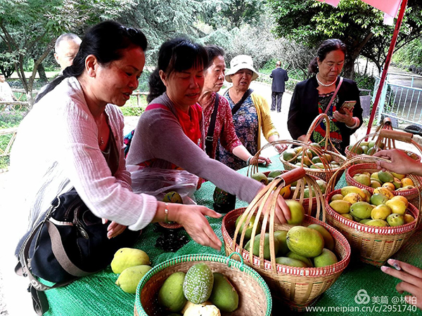 The whole chaenomeles garden covers an area of over 3,000 square meters. It is the largest and most concentrated area of chaenomeles planting and picking in Kunming. From August 17, visitors are able to pick by themselves using professional tools provided by the park.