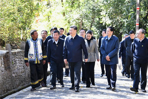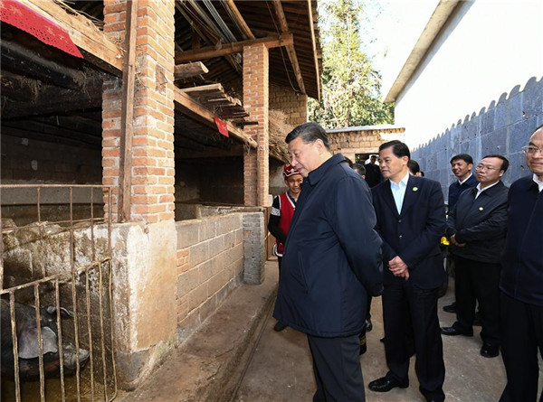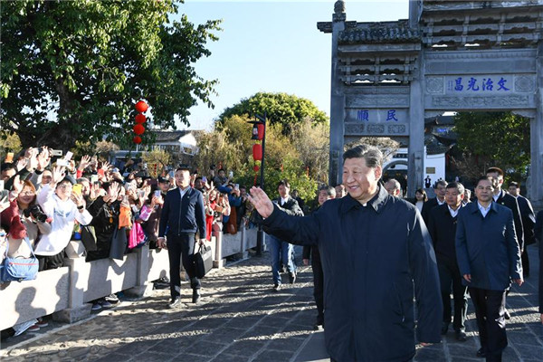Xi went to a village of the Wa ethnic group in Qingshui Township of the city of Tengchong Sunday afternoon to learn about poverty alleviation efforts and extend his Chinese New Year's greetings to the villagers.