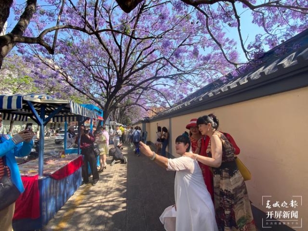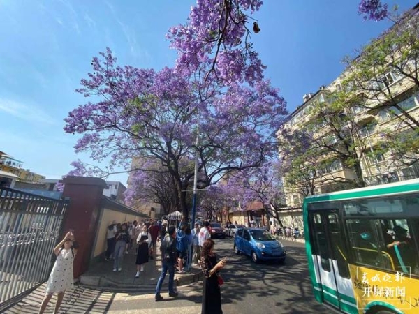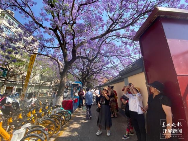 Nowadays Kunming’s Jiaochang Middle Road is surrounded by numerous purple jacaranda flowers, attracting many passers-by and tourists to watch and take photos.