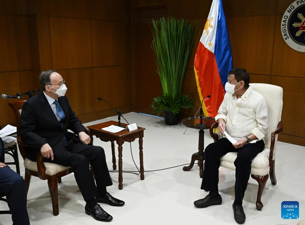 Chinese Vice President Wang Qishan meets with Philippine President Rodrigo Duterte in Manila, the Philippines, June 29, 2022.