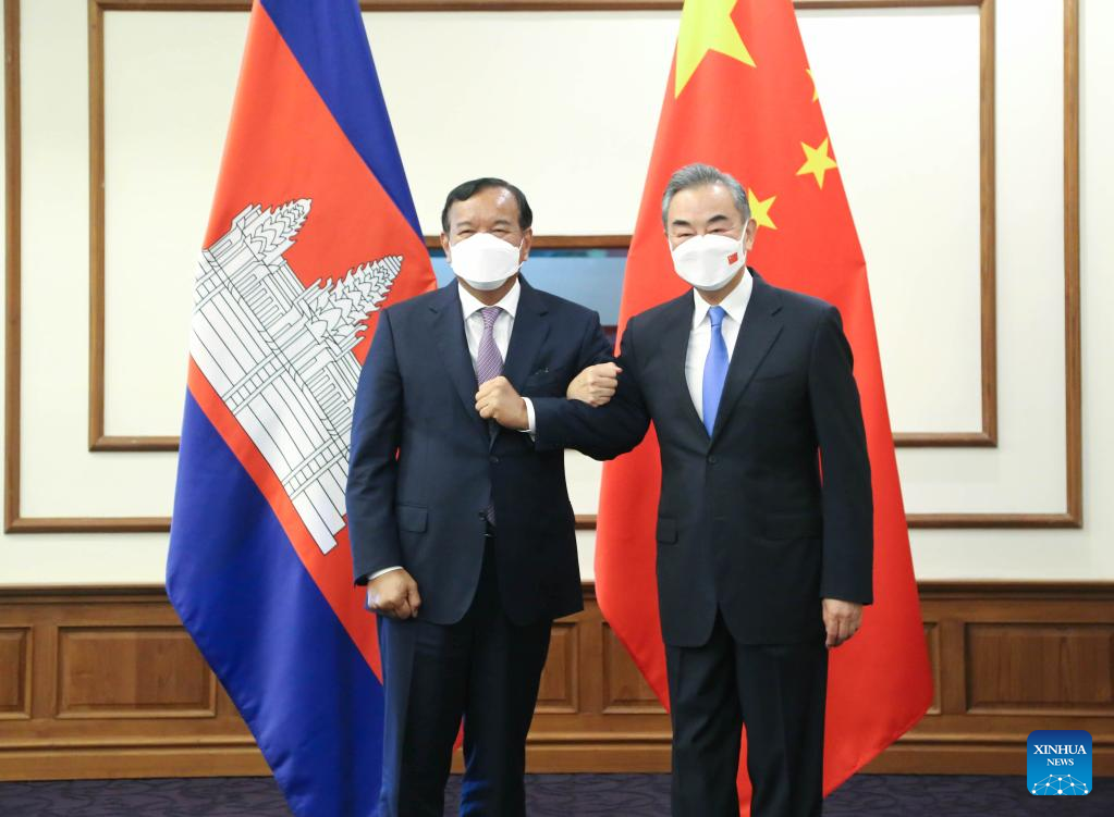While praising the all-around cooperation between China and Cambodia is at the forefront of China's relations with other regional countries, Wang said that under new circumstances, China is willing to work with Cambodia to further implement the strategic consensuses reached between their leaderships, strengthen communication, and deepen cooperation, so as to do a good job in solidifying the China-Cambodia community with a shared future, and to celebrate the 65th anniversary of bilateral diplomatic ties in 2023 with more visible results.