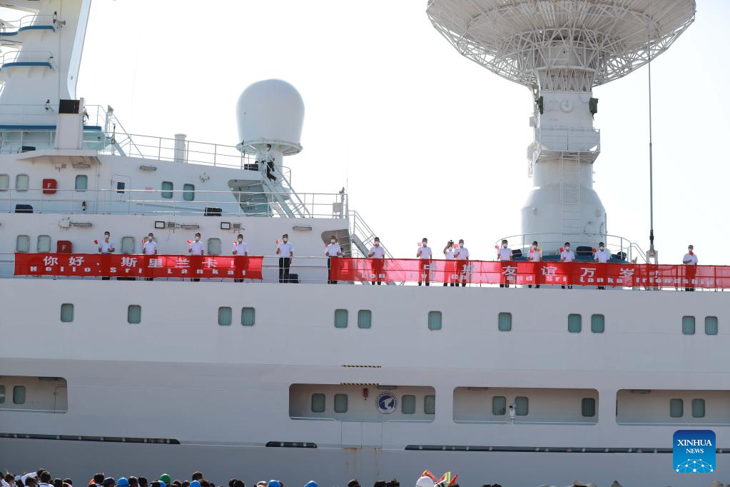 Photo taken on Aug. 16, 2022 shows China's space-tracking ship Yuanwang-5 docking at Sri Lanka's Hambantota International Port in Hambantota, Sri Lanka.