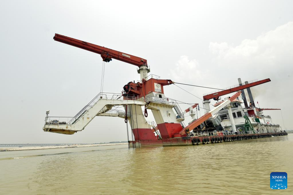 This photo shows a cutter suction dredger working at a site of the Padma Multipurpose Bridge Project River Training Works (PMBP-RTW) project in Bangladesh, on May 31, 2023. (Xinhua)