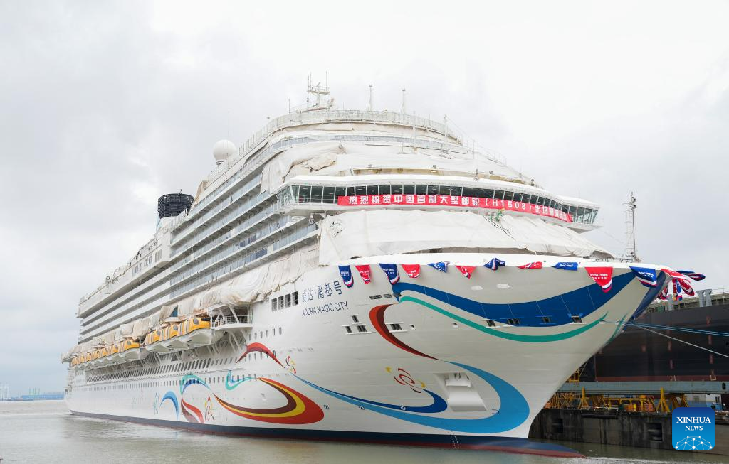 This photo taken on June 6, 2023 shows China's first domestically-built large cruise ship "Adora Magic City" in east China's Shanghai. (Xinhua/Ding Ting)