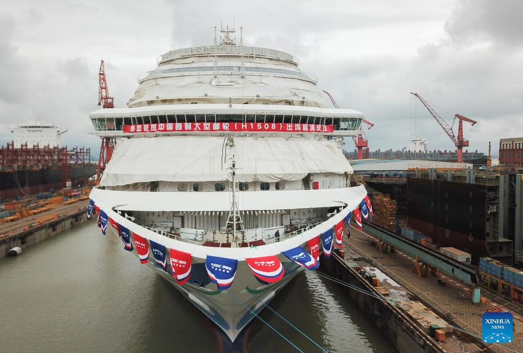 China's first domestically-built large cruise ship completed its undocking in Shanghai on Tuesday, marking its complete transition into the dock mooring debugging stage.