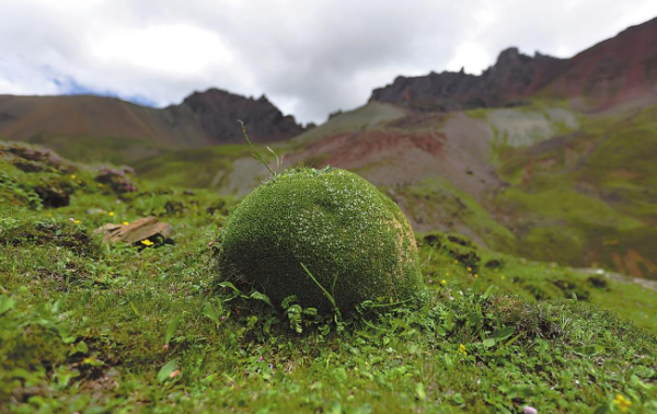 On the alpine meadow at an altitude of 4,320 meters, numerous spherical "mounds" can be seen. These "mounds" are arenaria densissimas, which grows in clumps to retain a bit of heat in the harsh mountain environment, keeping warm together to withstand extreme cold.