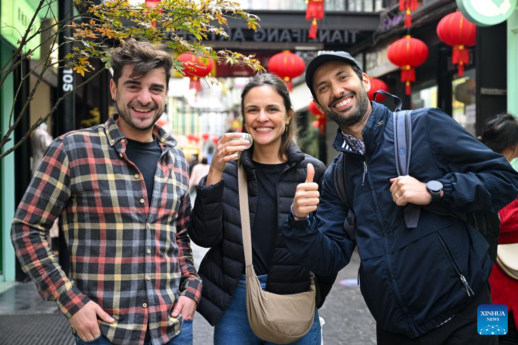 Tourists from Spain visit Tianzifang, an art area in east China's Shanghai, Dec. 3, 2024. Expanding visa-free policy is a milestone in China's journey toward greater openness and also shows its confidence on the global stage. So far, 38 countries enjoy unilateral visa-free access, and the maximum stay for visitors has been extended to 30 days as of Nov. 30.
