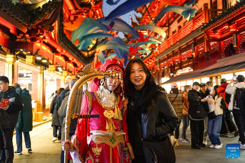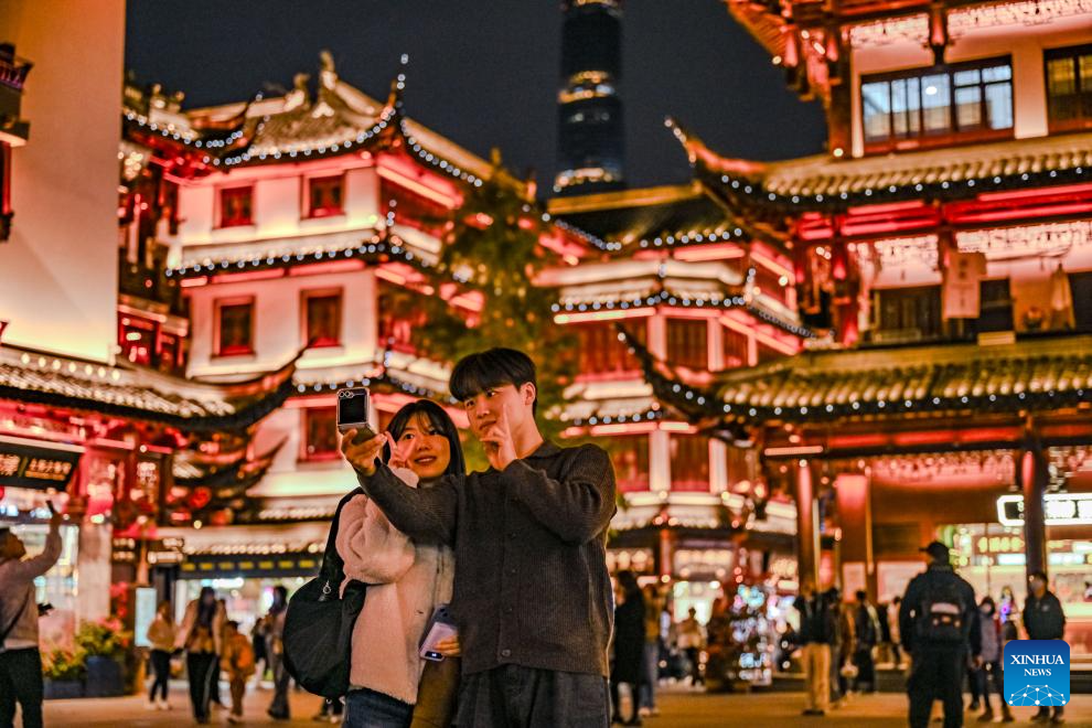 Tourists from South Korea visit the Yuyuan Garden Mall in east China's Shanghai, Dec. 4, 2024. Expanding visa-free policy is a milestone in China's journey toward greater openness and also shows its confidence on the global stage. So far, 38 countries enjoy unilateral visa-free access, and the maximum stay for visitors has been extended to 30 days as of Nov. 30.