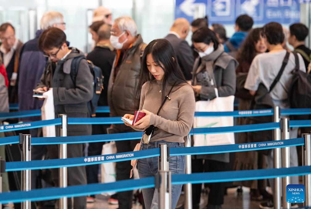 A tourist from Japan (front) waits for entry inspection at Beijing Capital International Airport in Beijing, capital of China, Dec. 4, 2024. Expanding visa-free policy is a milestone in China's journey toward greater openness and also shows its confidence on the global stage. So far, 38 countries enjoy unilateral visa-free access, and the maximum stay for visitors has been extended to 30 days as of Nov. 30.