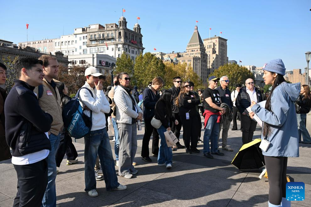 Tourists from Spain visit the Bund in east China's Shanghai, Dec. 4, 2024. Expanding visa-free policy is a milestone in China's journey toward greater openness and also shows its confidence on the global stage. So far, 38 countries enjoy unilateral visa-free access, and the maximum stay for visitors has been extended to 30 days as of Nov. 30.