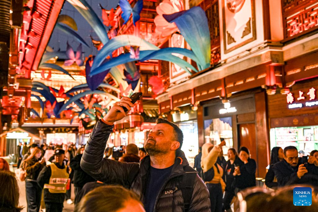 A tourist from Poland visits the Yuyuan Garden Mall in east China's Shanghai, Dec. 4, 2024. Expanding visa-free policy is a milestone in China's journey toward greater openness and also shows its confidence on the global stage. So far, 38 countries enjoy unilateral visa-free access, and the maximum stay for visitors has been extended to 30 days as of Nov. 30.