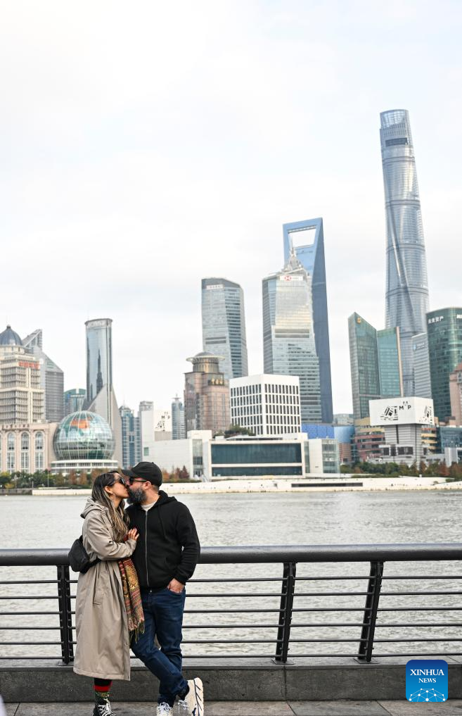 Tourists from Puerto Rico visit the Bund in east China's Shanghai, Dec. 4, 2024. Expanding visa-free policy is a milestone in China's journey toward greater openness and also shows its confidence on the global stage. So far, 38 countries enjoy unilateral visa-free access, and the maximum stay for visitors has been extended to 30 days as of Nov. 30.